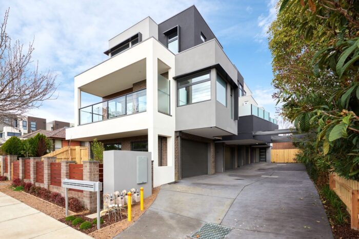 This four-unit townhouse development project in Bulleen spans across three-levels, featuring four townhouses built in Melbourne with contemporary finishes.