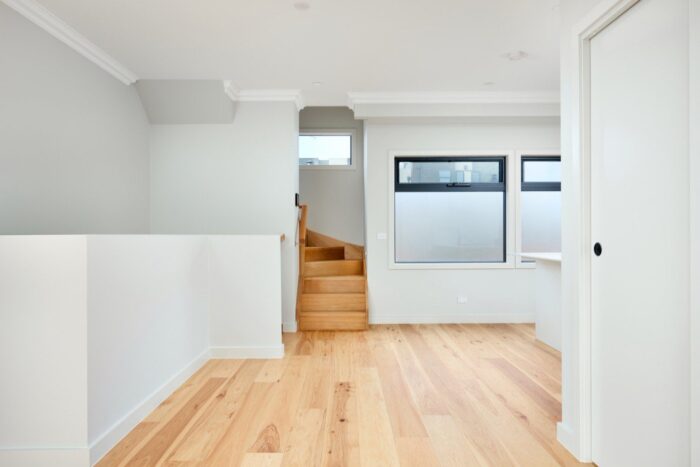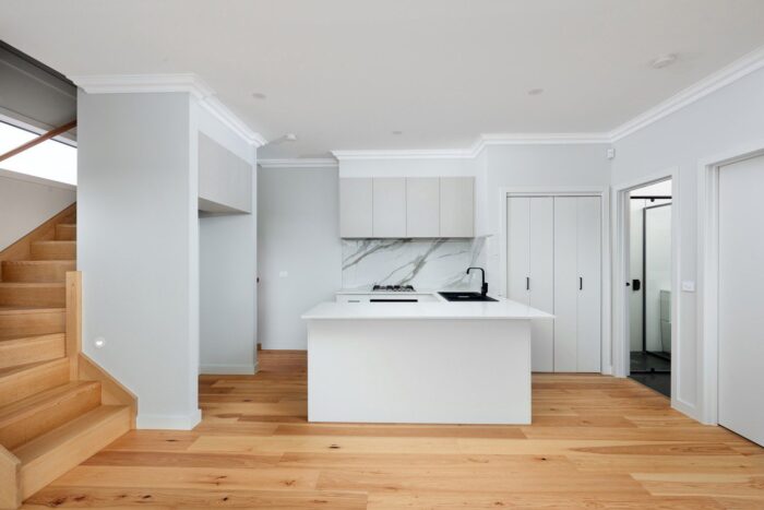 The entire first level of all four townhouses are dedicated to open plan and low maintenance living, with balcony access extending from the kitchen and living areas. Each unit has three bedrooms that spread across the two remaining levels.