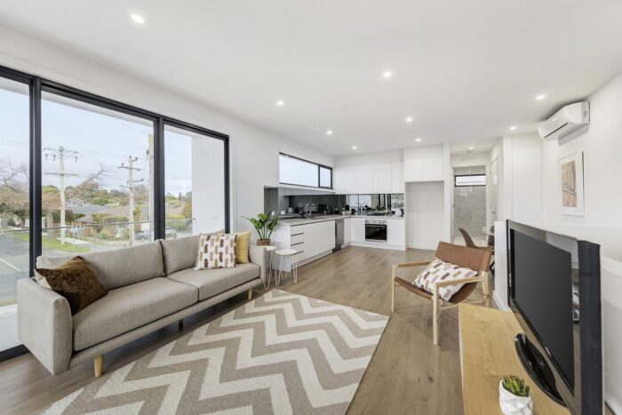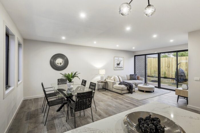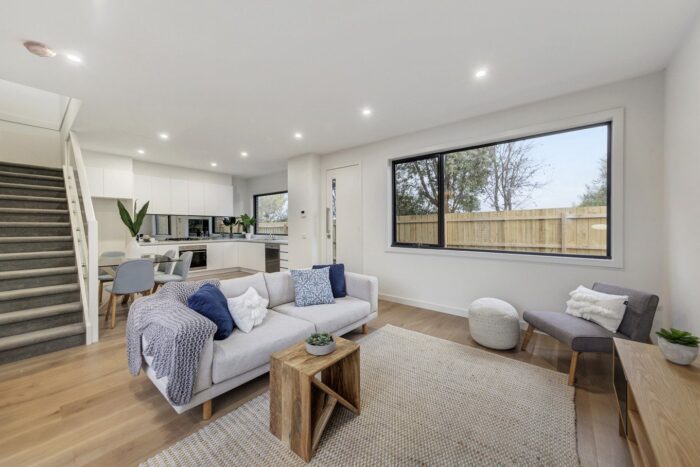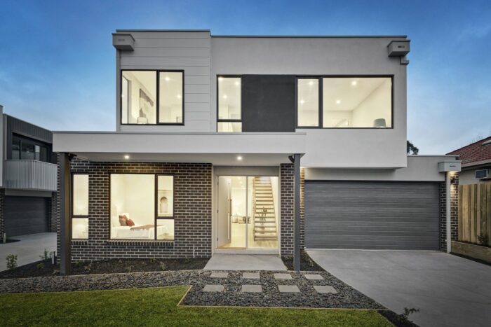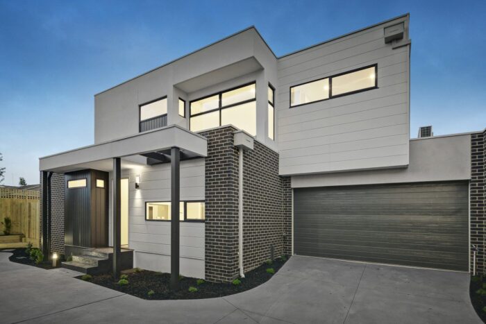 Two neighbouring properties were purchased by the same developer, with a vision to construct townhouses around the shared common middle driveway. This Melbourne townhouse development project was completed and handed over 14 months after the contract signing.
