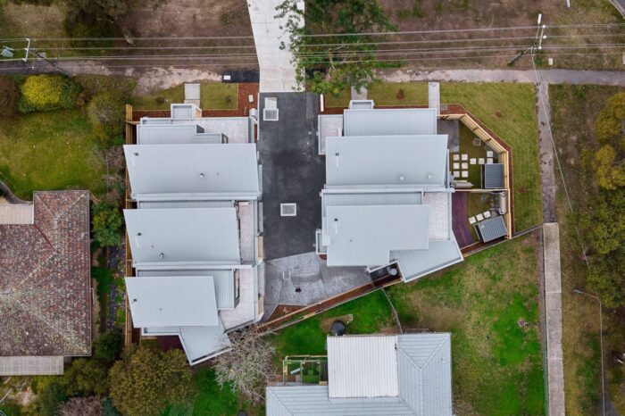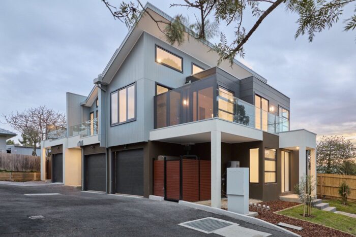 Built on an irregular corner block, this striking contemporary Lilydale 5-townhouse development showcases the architect’s skills at their best.
