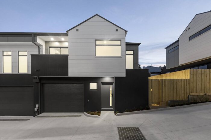 - Modern façades with a soft, nature-inspired palette (eg. Colorbond Pale Eucalypt, Colorbond Monument)